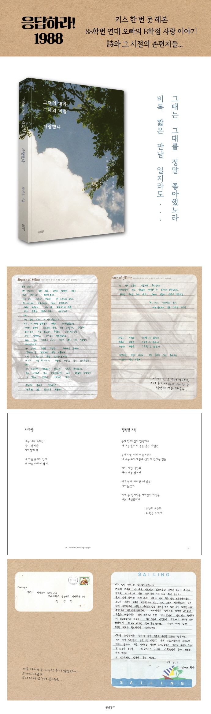 이 시집은 특이하게도 중간중간 저자와 지인들의 편지 원본이 있고 영화 연극 표도 있다. 그 편지들을 읽으며 마치 누군가의 일기를 훔쳐보는 듯한 느낌도 있다. 친구들에게 학보를 보내고 레포트 용지에 편지를 써서 보내던 시절이 생각난다. 편지를 쓰고 답장을 기다리고. 마당을 지키던 개가 우체부 아저씨의 인기척에 짖으면 나에게 온 편지가 있을까 문으로 달려나갔던 시절. 요즘엔 카톡 앞에 ‘1’이 사라지는 것을 확인한다. 과거에 비하면 너무 낭만이 없다. 8~90년대 학번에게 이 책을 권한다.