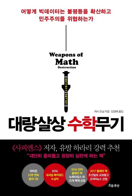 교육, 노동, 광고, 보험, 정치에 이르기까지 '대량살상 수학무기'가 인종차별, 빈부격차, 지역차별 등 인간의 편견과 오만을 코드화해 불평등을 확대하고 민주주의를 위협하는가를 알려준다. 수학과 데이터는 편견을 강화하고 있다.